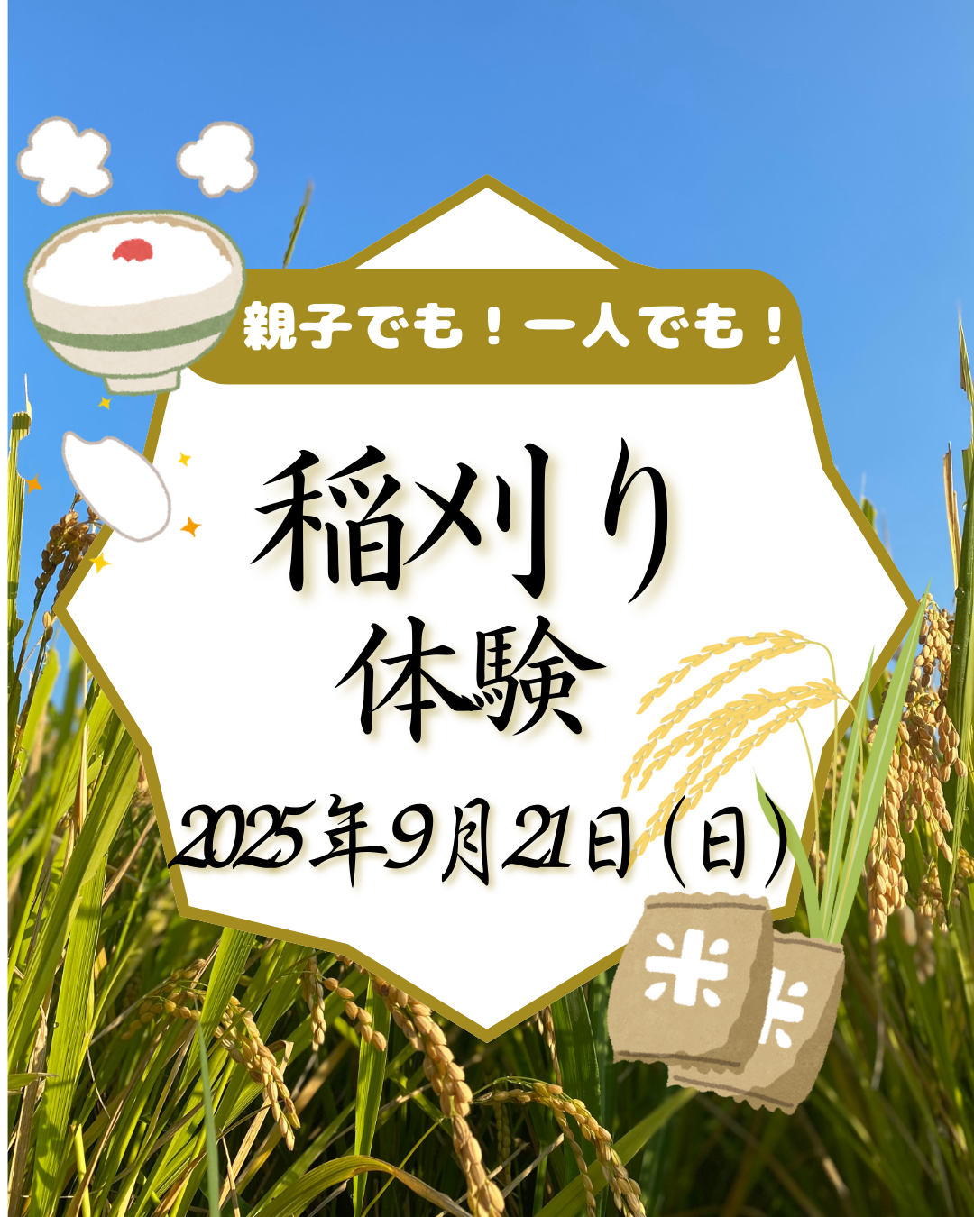 今年も開催します!遊農園稲刈り体験♪